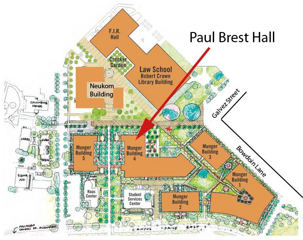 Paul Brest Hall is located at 555 Salvatierra Walk, Stanford, CA, 94305.