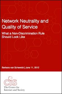 STANFORD, Calif., June 11, 2012 –Barbara van Schewick, faculty director of the Center for Internet and Society at Stanford Law School and a professor of law and electrical engineering at Stanford University, today published a white paper titled “Network Neutrality and Quality of Service: What a Non-Discrimination Rule Should Look Like.” Currently, the relationship between network neutrality and Quality of Service is uncertain and contentious. Often, it is not immediately apparent how a specific non-discrimination rule affects network providers’ ability to offer Quality of Service. At the same time, it is unclear which forms of Quality of Service, if any, a network neutrality regime should allow. The paper explains how eight different non-discrimination rules affect network providers’ ability to offer Quality of Service and which forms of Quality of Service, if any, a non-discrimination rule should allow. The paper: